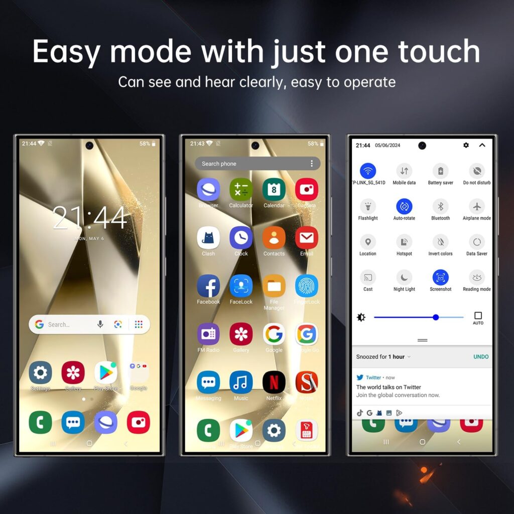 The big 6.8-inch display makes everything easier to see. It’s great for watching videos, reading news, online shopping, and video calls. The screen size is especially helpful for seniors and users who prefer larger text.