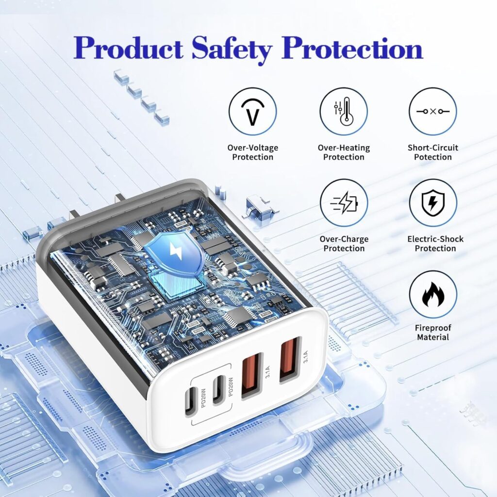 It features multiple USB-C and USB-A ports, so you can charge more than one device at the same time—perfect for home, office, and travel.