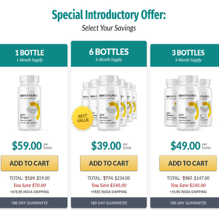 The pricing of Joint Genesis may vary based on offers and packages available at different times. For the latest and most accurate pricing, users should check the official website.