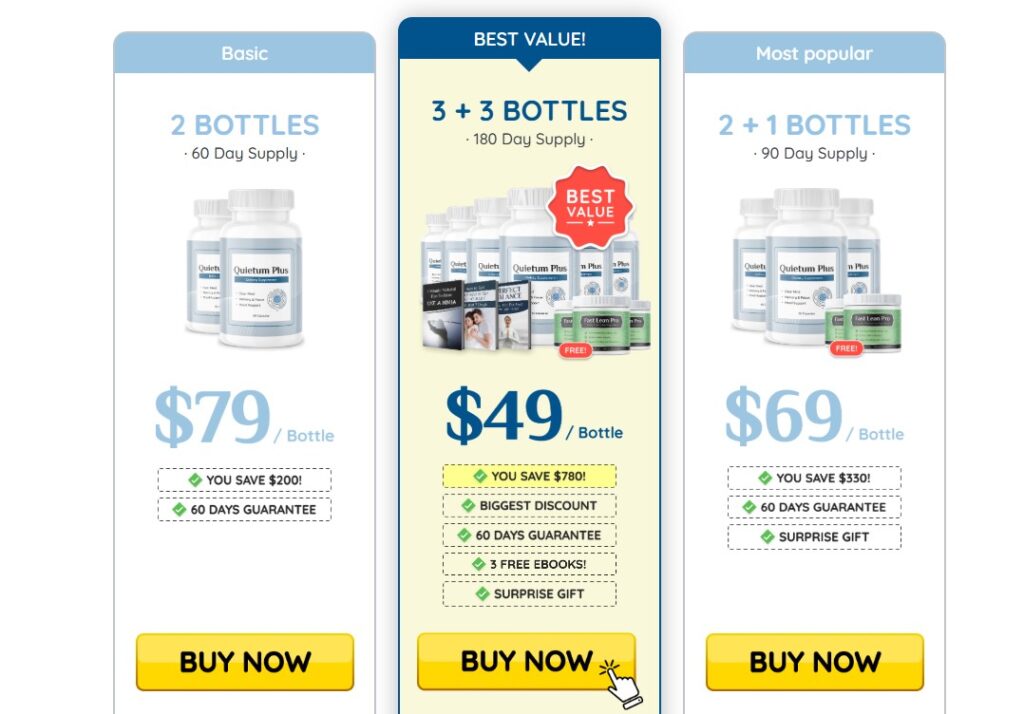 Based on current USA market research, Quietum Plus pricing commonly falls in this range: