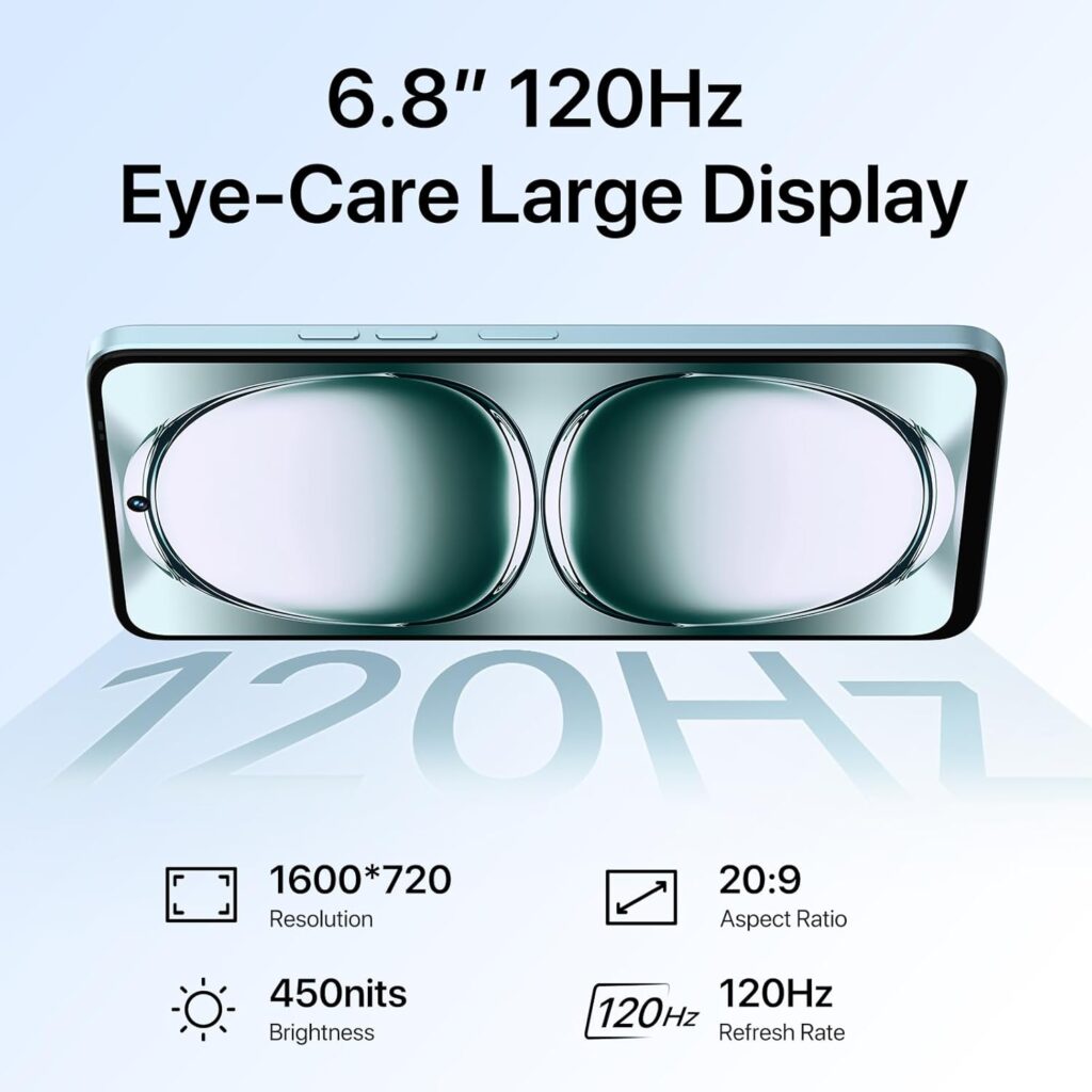 📱 Large 6.8” HD+ Display with 120Hz Refresh Rate